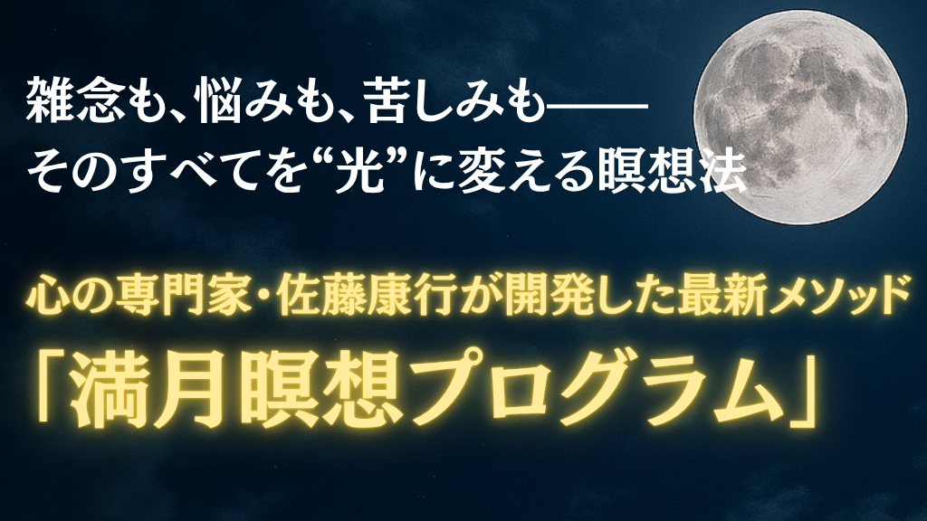 「佐藤康行の満月瞑想プログラム」は、「満月瞑想」を今日からご自宅で始められるオンライン教材です。